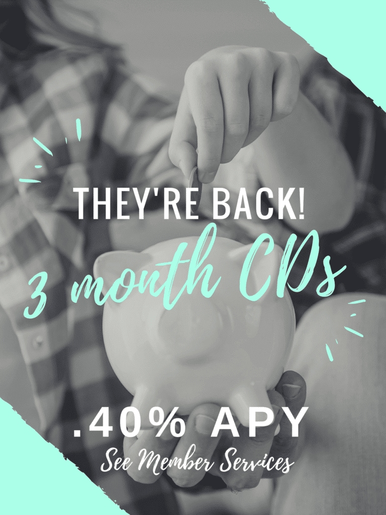 We are pleased to announce that our very popular 3 month CD is back for both regular and IRA Certificates of Deposit.