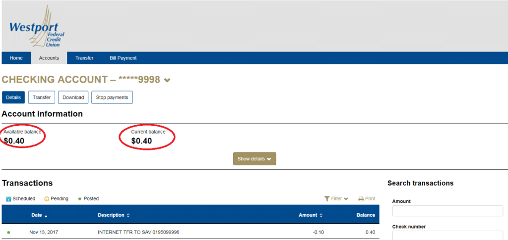 Current and available balance will be displayed more prominently. It has come to our attention over the years that many users are unaware when their current and available balances are different. This can lead to NSF charges and returned items. While we still recommend balancing your check register, this should be a helpful tool. Please keep in mind that this will not show any checks or ACH transactions that are pending. Available balance will reflect only debit card and deposit holds.