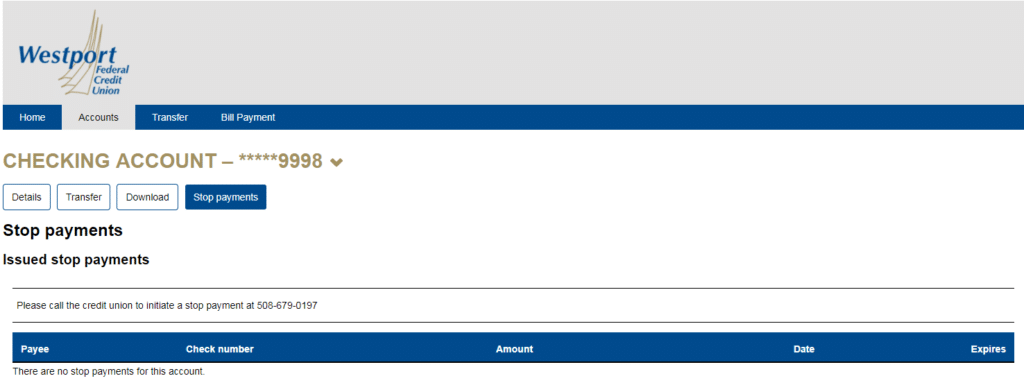 If you’ve placed stop payments on any checks, you’ll be able to view the list of them.