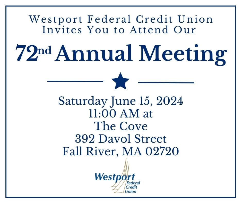 Westport Federal Credit Union invites you to join us for our 72nd Annual Meeting! The Annual Meeting will be…