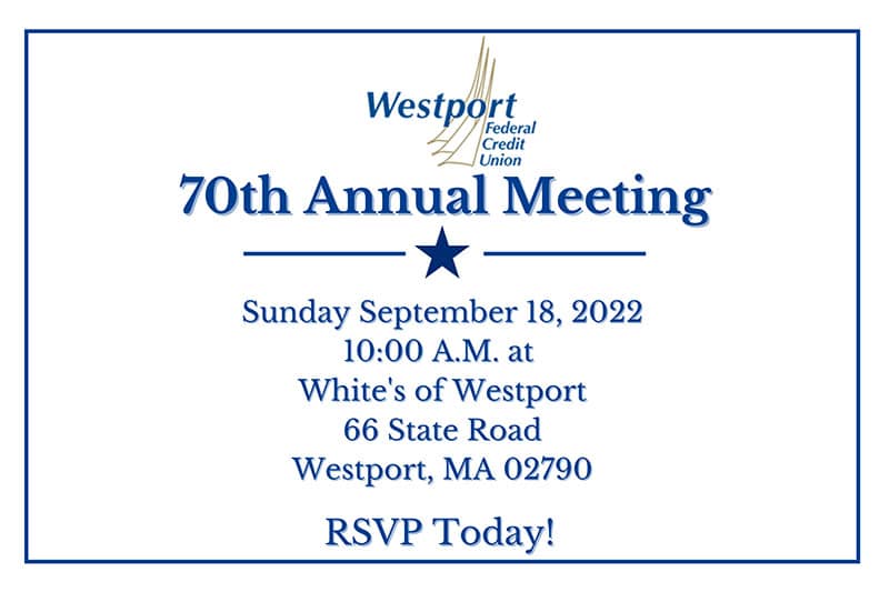 The 70th Annual Meeting of the members of Westport Federal Credit Union will be held on Sunday, September 18th at…